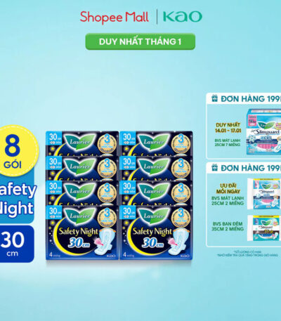 Combo 8 gói Băng vệ sinh Laurier Safety Night Đêm Siêu An Toàn 30cm 4 miếng