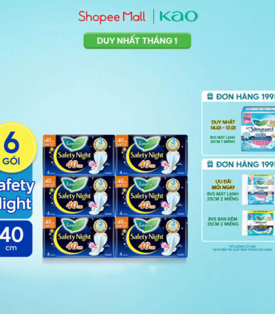 Combo 6 gói Băng vệ sinh Laurier Safety Night Đêm Siêu An Toàn 40cm 4 miếng