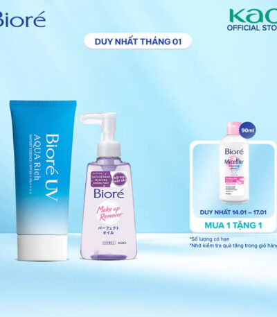 Combo Gel Chống Nắng Dưỡng Ẩm Biore UV Aqua Rich 90ml và Dầu Tẩy Trang Biore Make Up Remover Perfect Oil 150ml