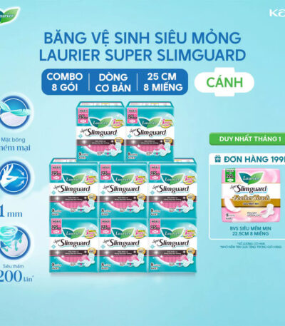 Combo 8 gói BVS Laurier siêu mỏng bảo vệ 1mm 25cm 8 miếng