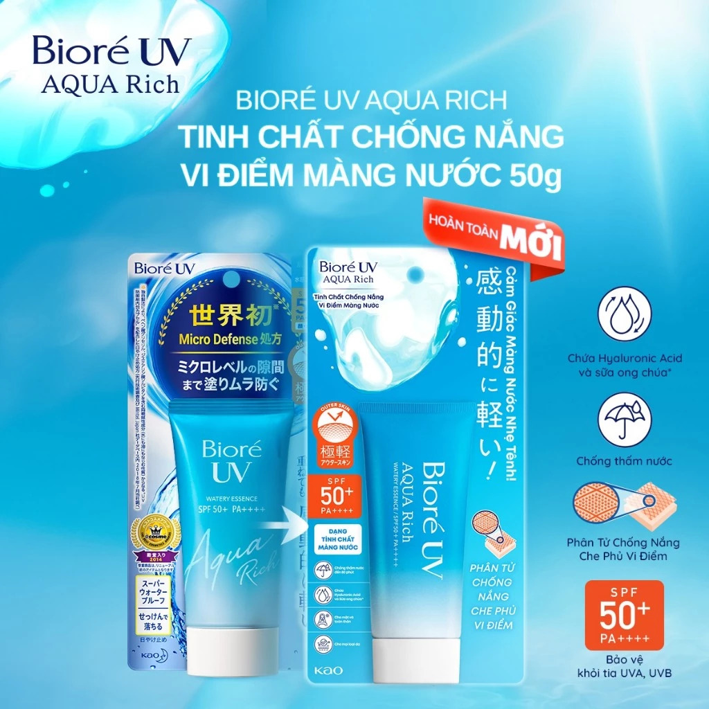 Combo 2 Essence Chống Nắng Màng Nước Dưỡng Ẩm Biore UV Aqua Rich Watery Essence SPF50+/PA++++50G