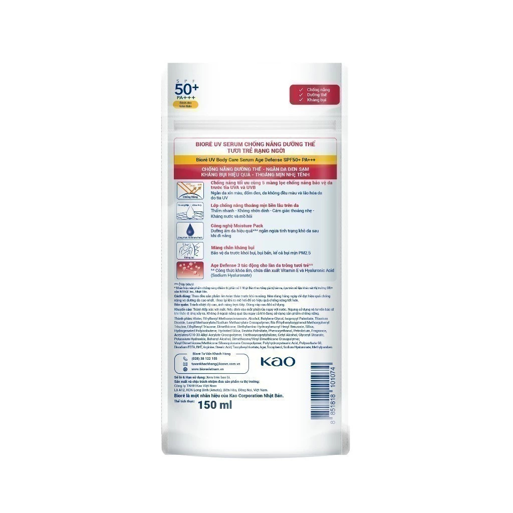 Combo 2 Serum chống nắng dưỡng thể kháng bụi – tươi trẻ Biore 150ml