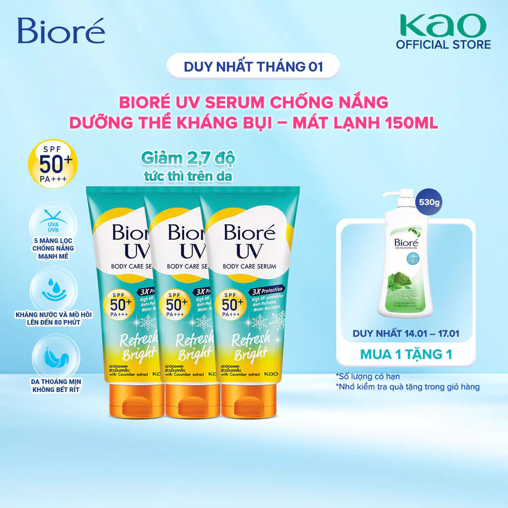 Combo 3 Serum Chống Nắng Dưỡng Thể Kháng Bụi – Sáng Mịn Mát Lạnh Biore 150ml