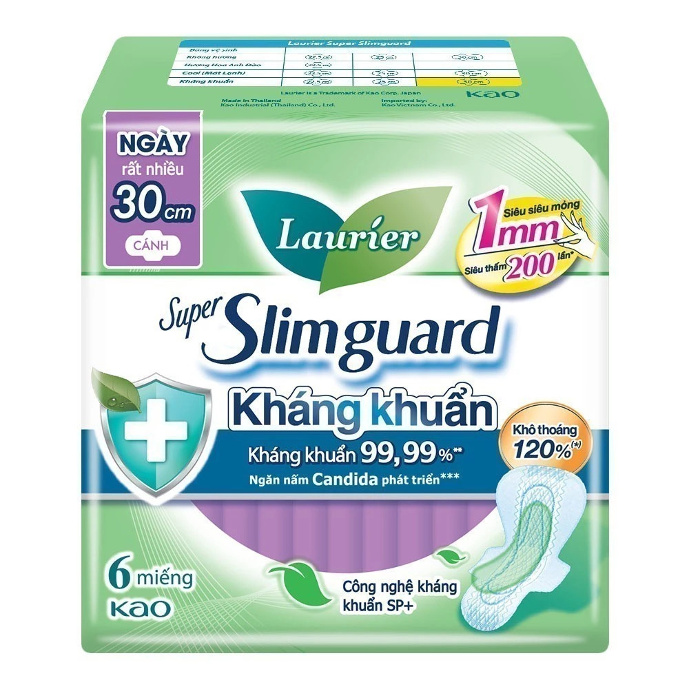 Combo 4 gói BVS Laurier Siêu Mỏng 1mm Kháng khuẩn 30cm 6 miếng