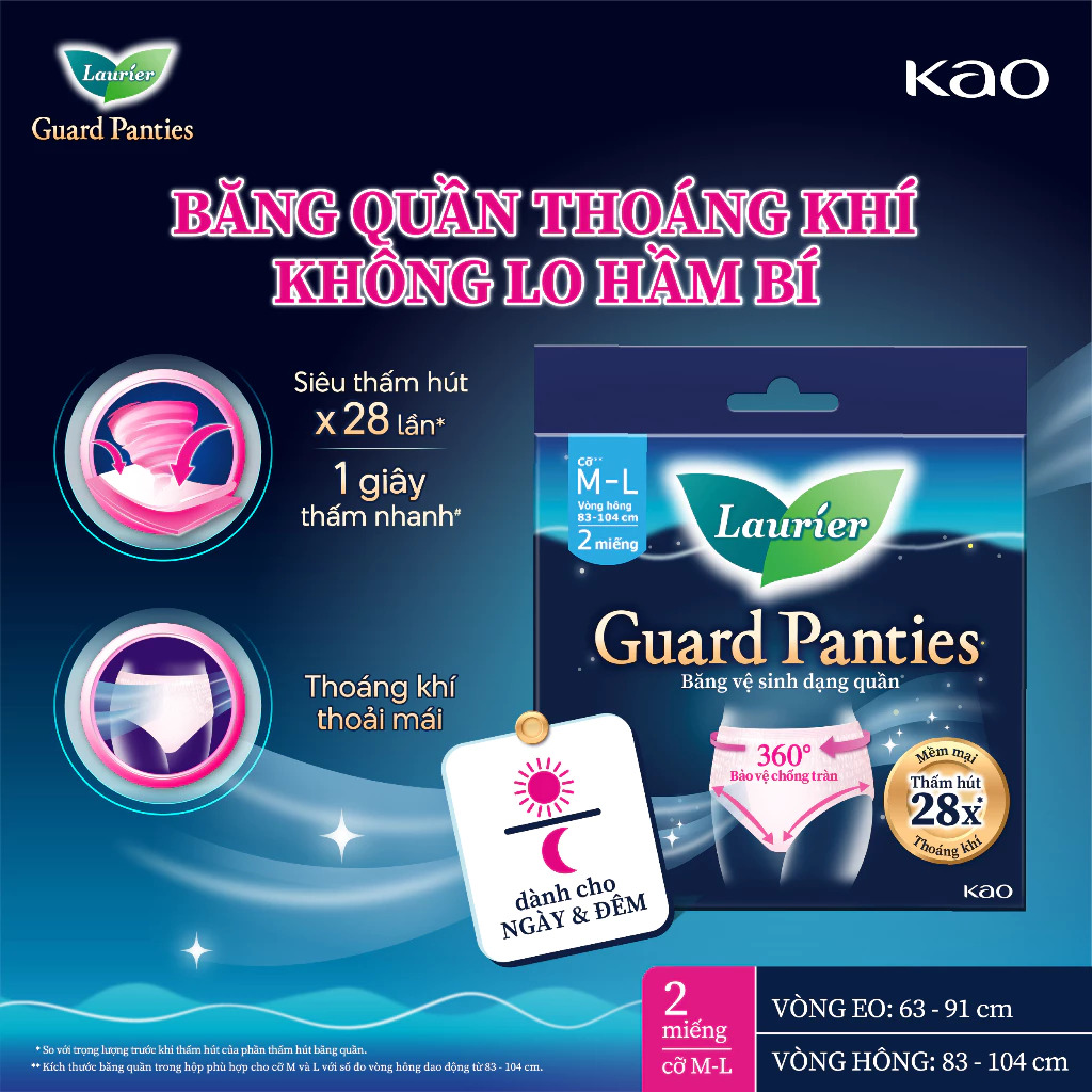 Combo 6 Băng Vệ Sinh Quần Laurier Guard Panties Size M-L Gói 2 Miếng
