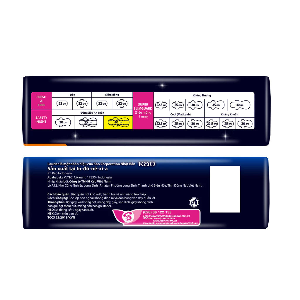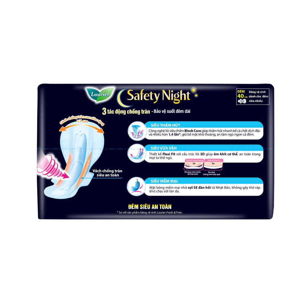 Combo 6 gói Băng vệ sinh Laurier Safety Night Đêm Siêu An Toàn 40cm 4 miếng