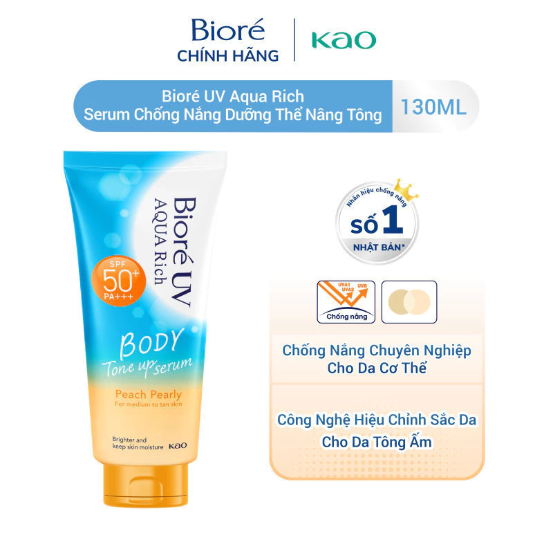 Combo Chống Nắng Sáng Rạng Rỡ UV Aqua Light Up 70g và Chống Nắng Dưỡng Thể Nâng Tông Peach Pearly 130ml