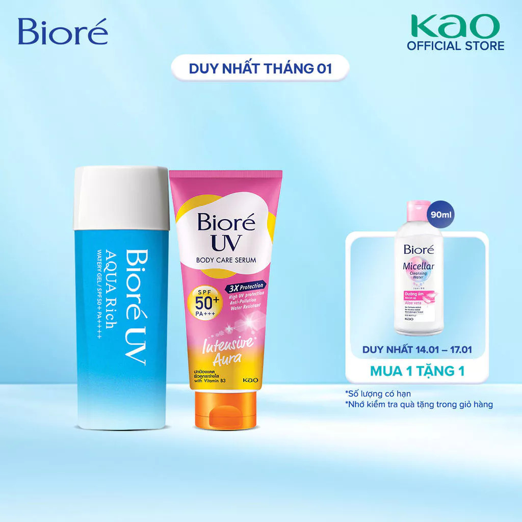 Combo Gel Chống Nắng Dưỡng Ẩm Biore UV Aqua Rich 90ml và Serum Chống Nắng Dưỡng Thể – Trắng Sáng Mịn Màng Biore 150ml
