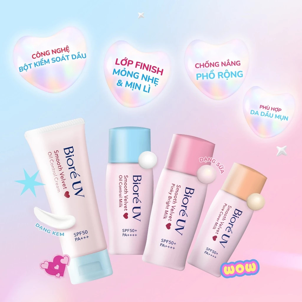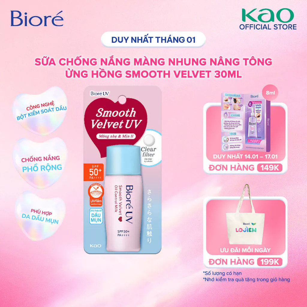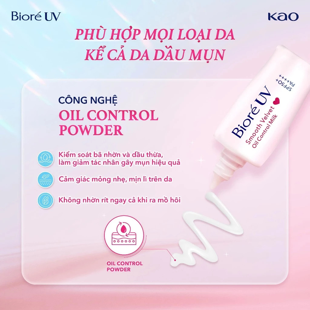 Sữa chống nắng kiềm dầu Biore UV màng nhung kiểm soát bóng nhờn SPF50+ PA++++ 30ml