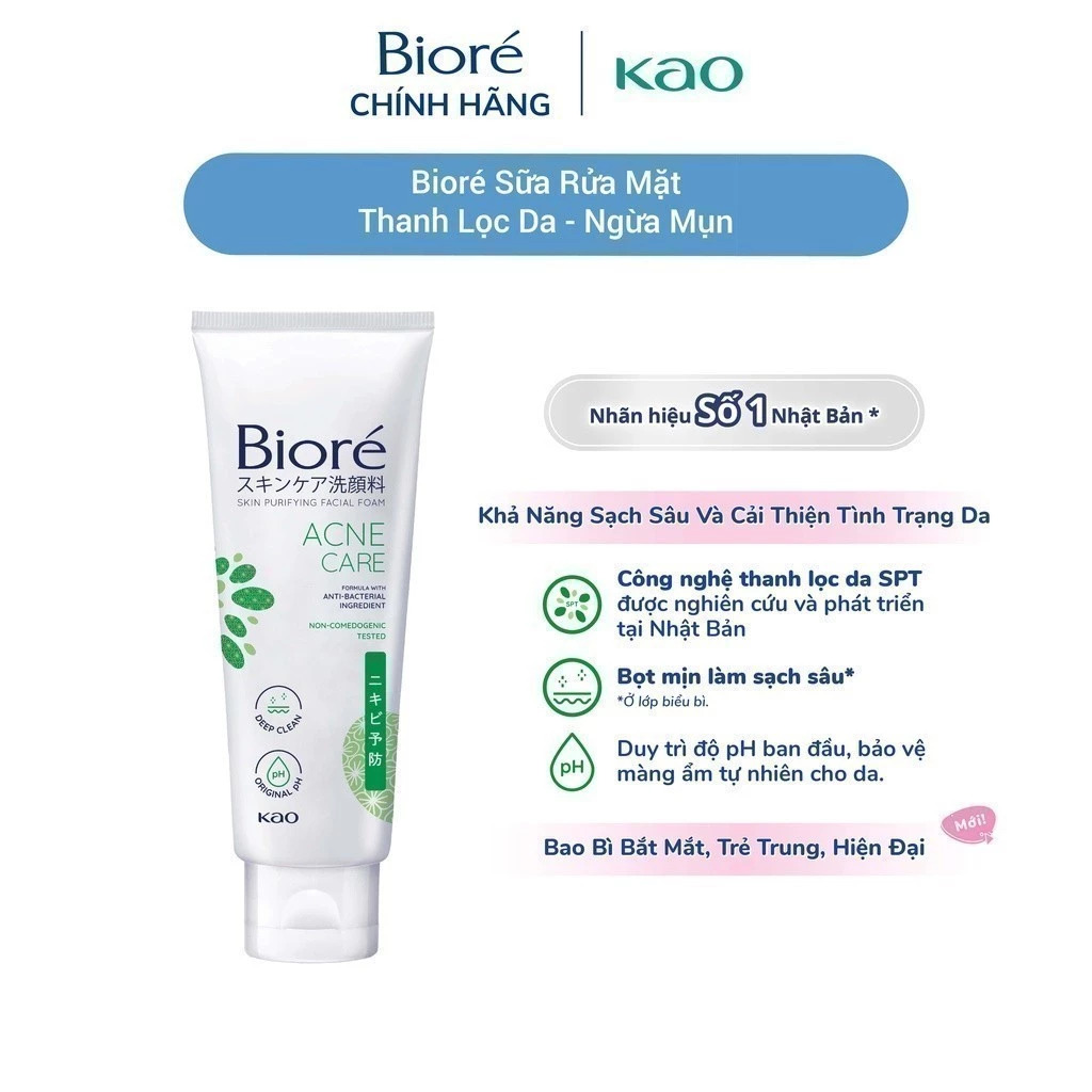 Sữa Rửa Mặt Thanh Lọc Da – Sạch Mụn & Kháng Khuẩn Biore 100g